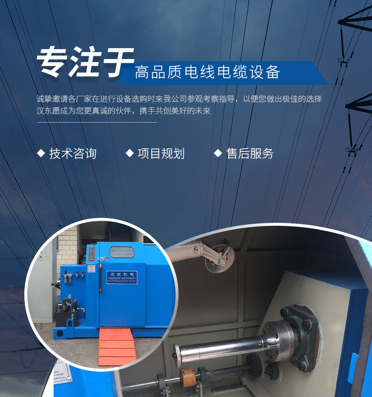 常州漢東機(jī)械始創(chuàng)于2006年,是集電線(xiàn)電纜機(jī)械設(shè)計(jì)、開(kāi)發(fā)、制造、安裝、調(diào)試為一體化的高科技企業(yè)。本公司自開(kāi)業(yè)以來(lái),積極引進(jìn)日本,歐美等國(guó)外電線(xiàn)電纜設(shè)備之先進(jìn)技術(shù),先后成功推出了達(dá)到行業(yè)先進(jìn)水平的電線(xiàn)電纜設(shè)備,主要產(chǎn)品有擠出、繞包、束線(xiàn)、成纜等電線(xiàn)電纜固定設(shè)備。在提供系統(tǒng)設(shè)備的同時(shí),還向客戶(hù)提供售前技術(shù)咨詢(xún)、項(xiàng)目規(guī)劃、以及售后服務(wù)。我公司本著“以人為本、科技先導(dǎo)、用戶(hù)為上”的宗旨,為客戶(hù)提供牢靠的產(chǎn)品與省心的服務(wù)。漢東愿成為您更真誠(chéng)的伙伴,攜手共創(chuàng)美好的未來(lái)!